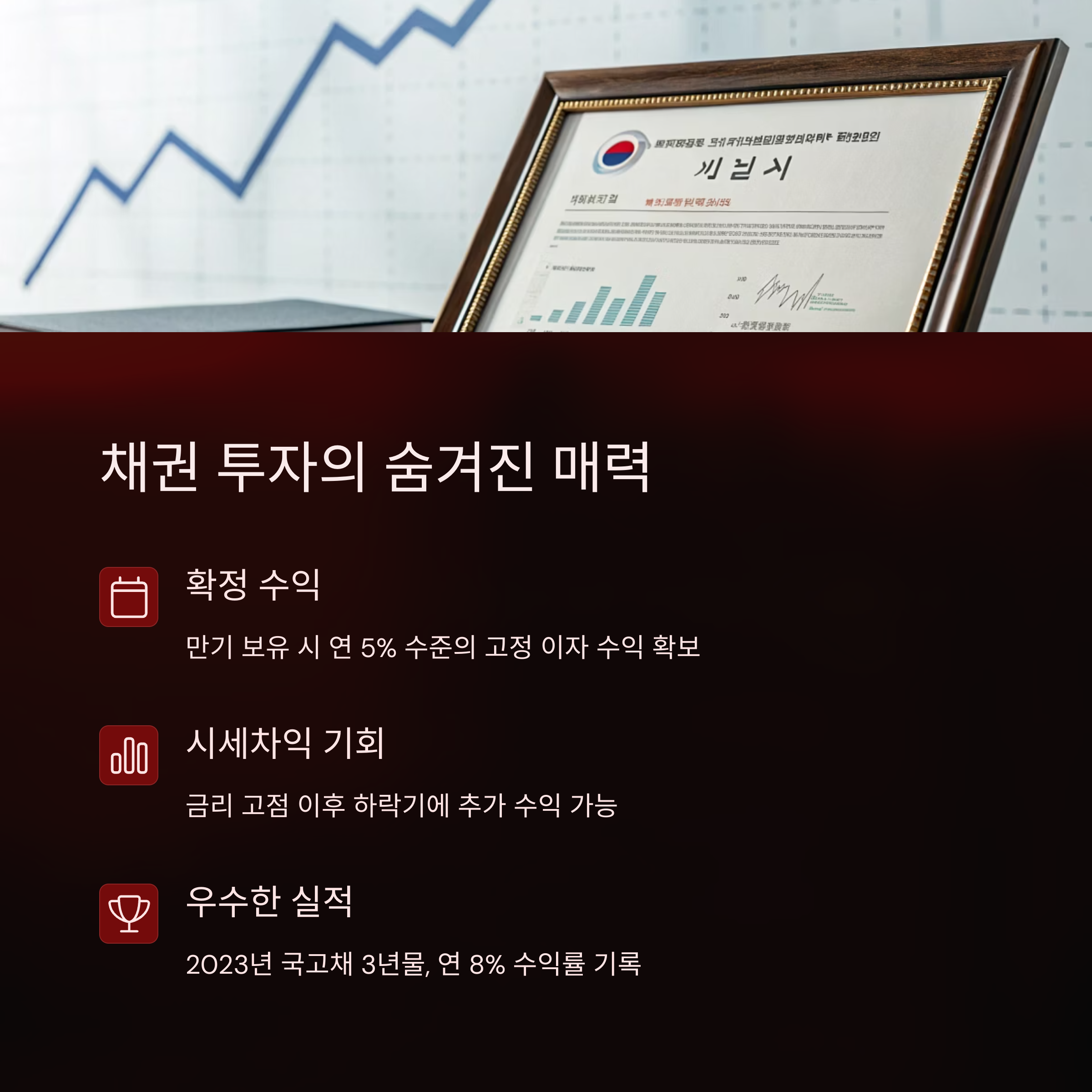 | 채권 투자의 장점 | 안정적 이자 수익과 리스크 분산 효과 제공 |
