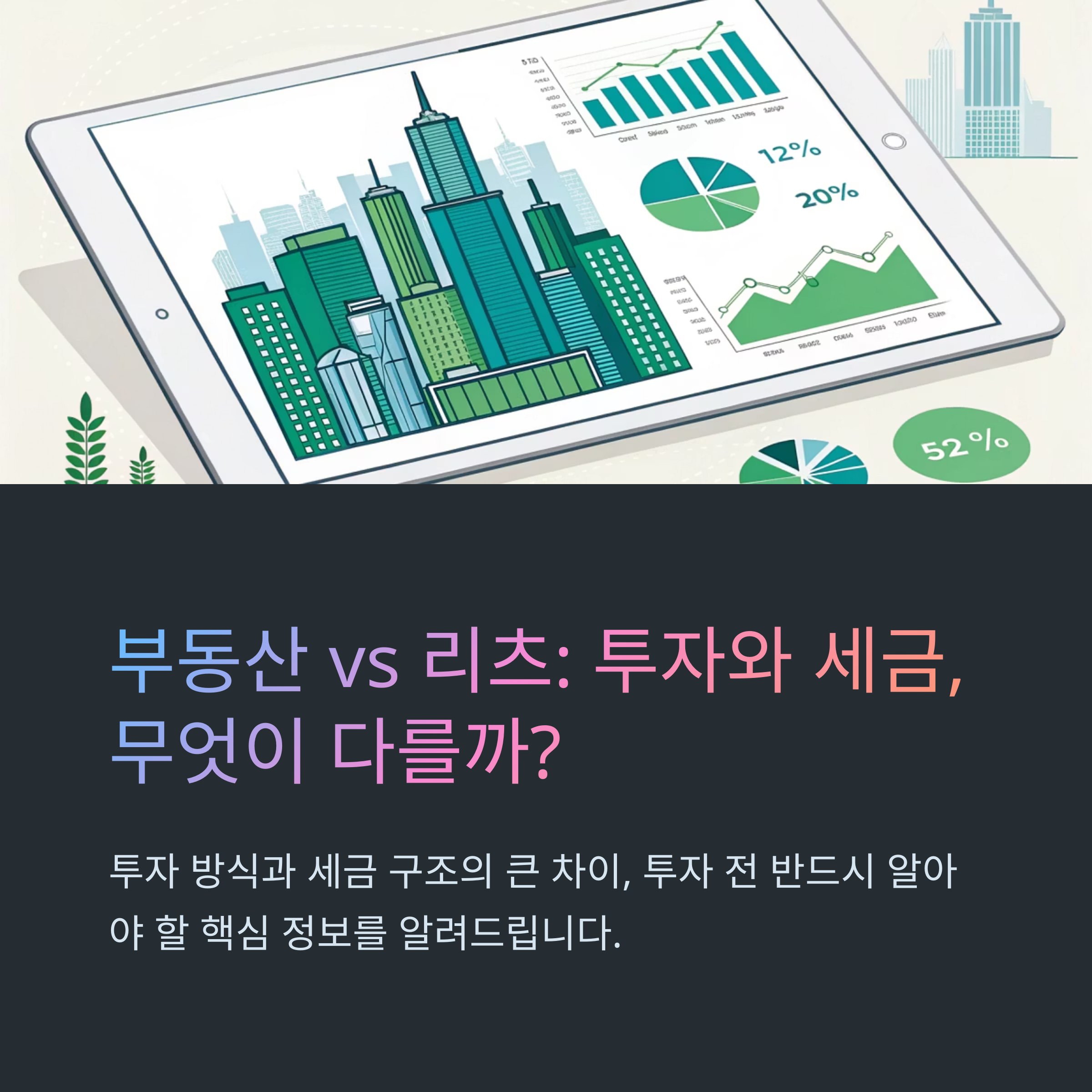 많은 분들이 안정적인 수익을 위해 부동산과 리츠(REITs)에 관심을 가지지만, 이 둘 사이에는 분명한 차이가 존재합니다. 특히 투자에 앞서 반드시 알아야 할 중요한 요소 중 하나는 바로 세금 구조입니다. 부동산은 실물 자산을 직접 소유하는 형태로, 양도소득세와 종합부동산세 등 다양한 세금 항목이 발생합니다. 반면 리츠는 부동산을 간접적으로 소유하는 구조로, 배당소득세 위주로 세금이 부과됩니다. 이러한 세금 차이는 투자 수익에 직접적인 영향을 미치며, 장기적인 투자 전략 수립에 있어서 매우 중요한 요소입니다. 이번 포스팅에서는 부동산과 리츠의 기본 구조부터 세금 체계까지 명확하고 쉽게 설명드릴 예정입니다. 단순한 정보 나열이 아니라 실제 사례와 비교를 통해 이해하기 쉽게 풀어드릴게요. 투자 전 반드시 알아야 할 필수 내용을 함께 살펴보겠습니다.