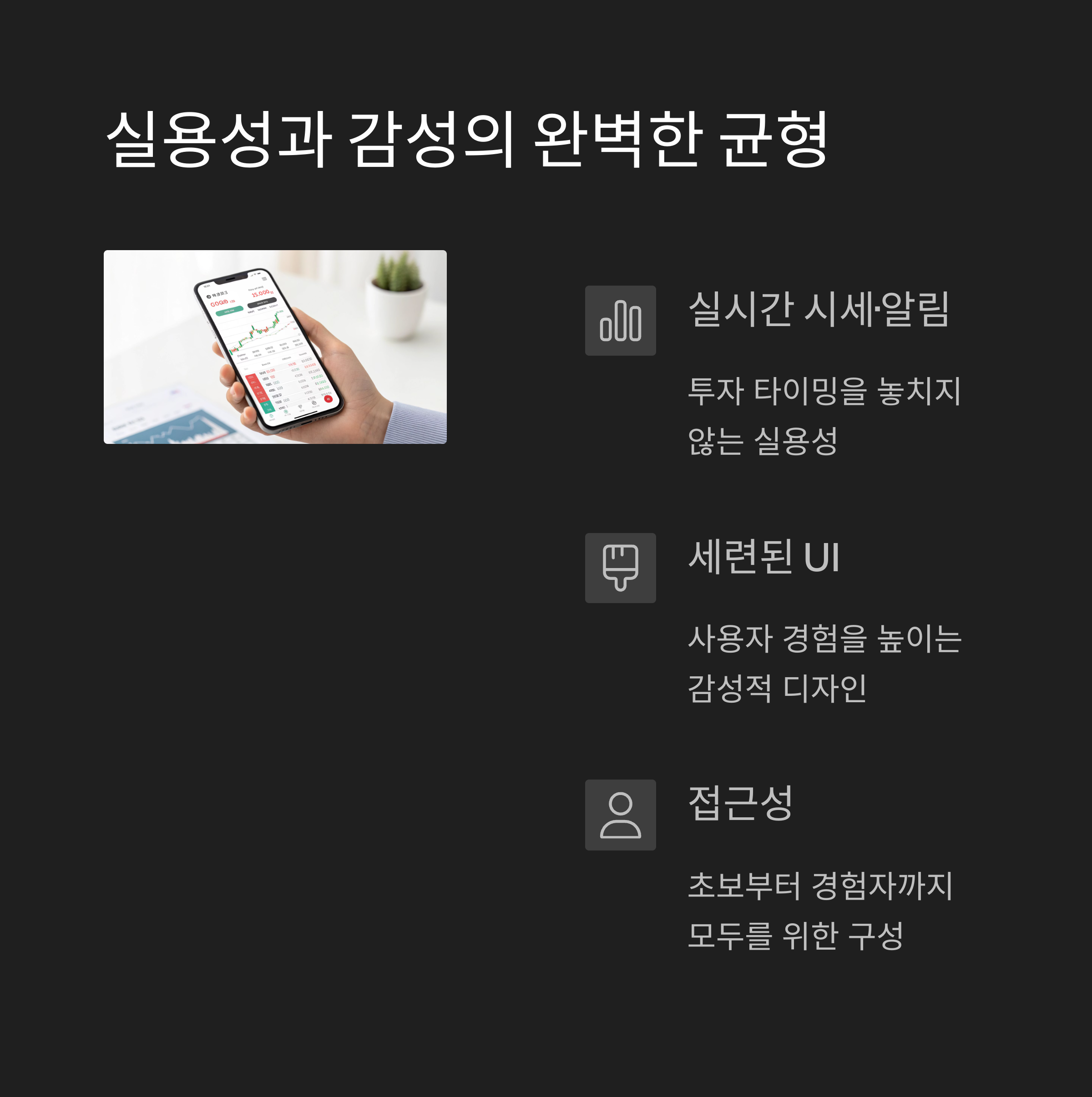 | 주식 초보자와 경험자 모두 만족 | 감정 분석, 공유 문화 발달 | 사용 편의성과 UX 디자인 강조 |